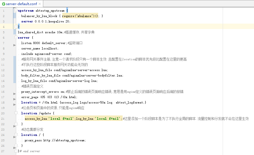 最终一个 server 段的配置就这么简单了,其他配置都是固定不变无需调整。