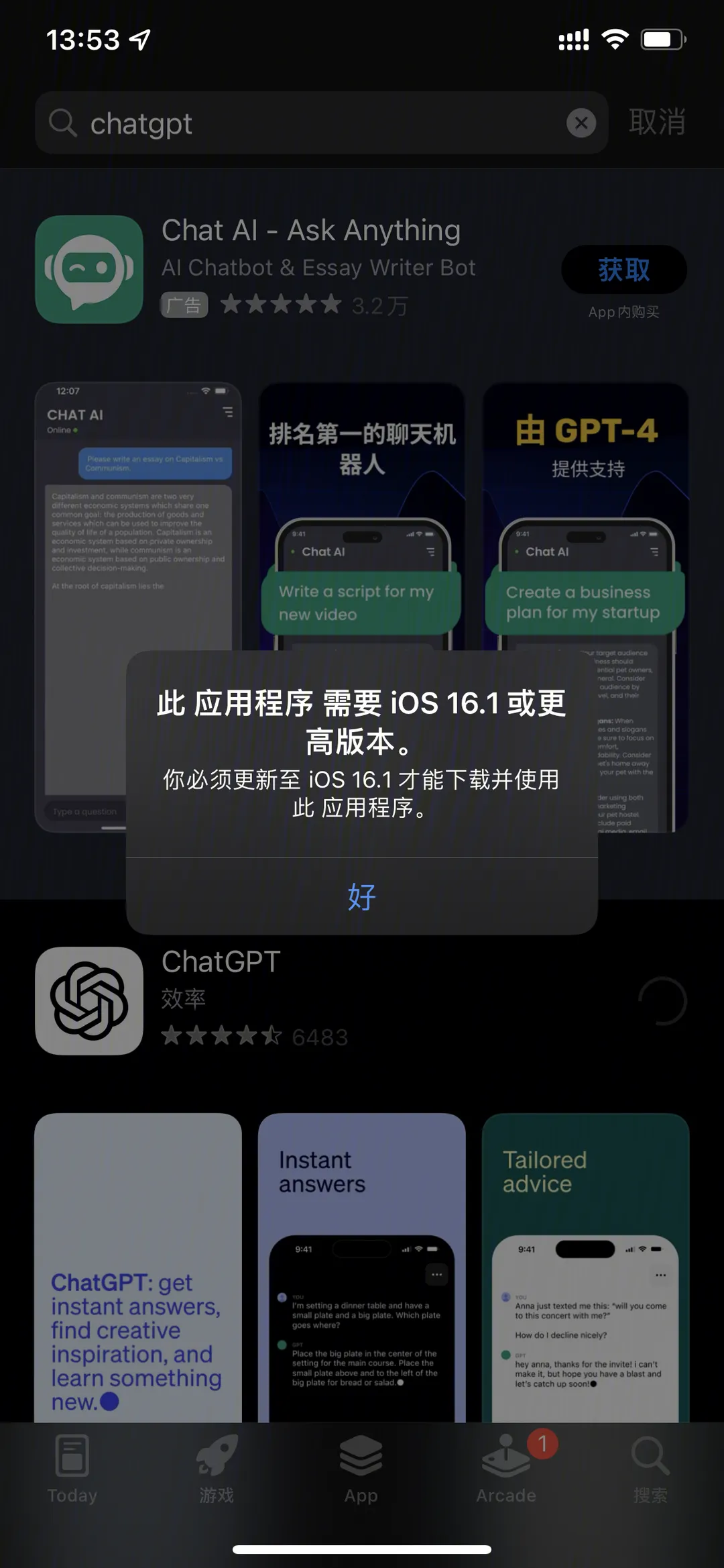 - 在 App Store 搜索并下载 ChatGPT App。